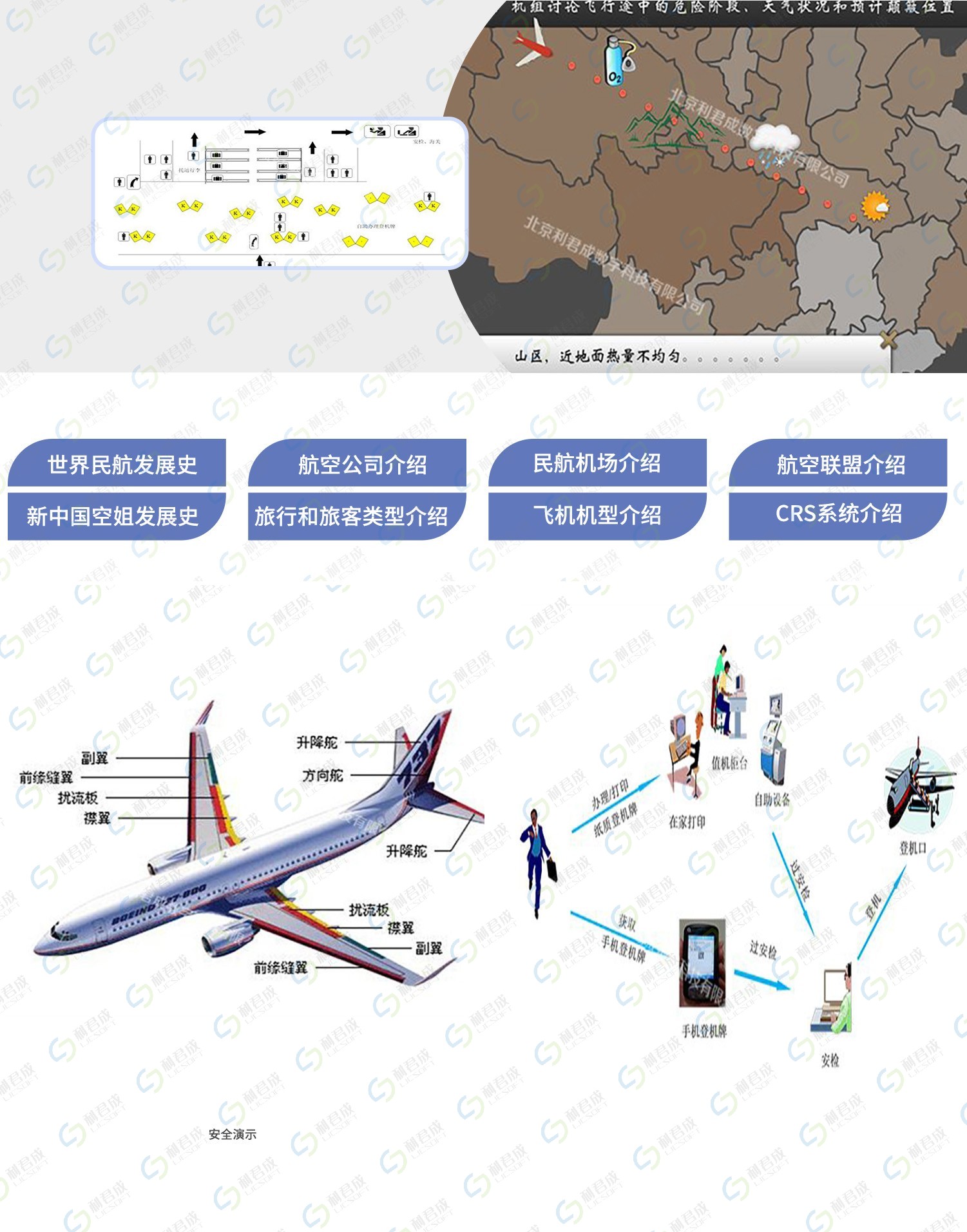 民航概论和基础知识教学资源平台,主要可以学习到世界民航的发展史、世界著名航空公司介绍、国内著名航空公司介绍、民航机场介绍、民用航空公共信息标志、新中国空姐发展史、航空联盟介绍、旅行和旅客类型介绍、飞机机型介绍、CRS系统介绍等空乘专业需要学习的民航概述和基础知识教学内容。