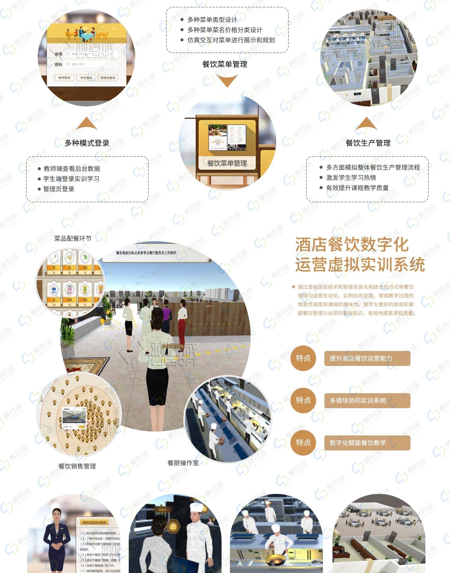 酒店餐饮数字化运营虚拟实训系统是一款专为酒店餐饮行业打造的综合性实训工具,它由餐饮菜单管理、餐饮生产管理、餐饮销售管理、餐饮人力资源和餐饮服务质量控制等核心模块构成,通过虚拟现实技术和智能化游戏化相结合的方式将餐饮管理与运营生动化、实例化的呈现,提高教学过程的情景仿真度、提高课程的趣味性,使学生更好的接收和掌握餐饮管理与运营的基础知识,可以有效地提高课程质量。旨在全方位提升酒店餐饮运营管理能力。
